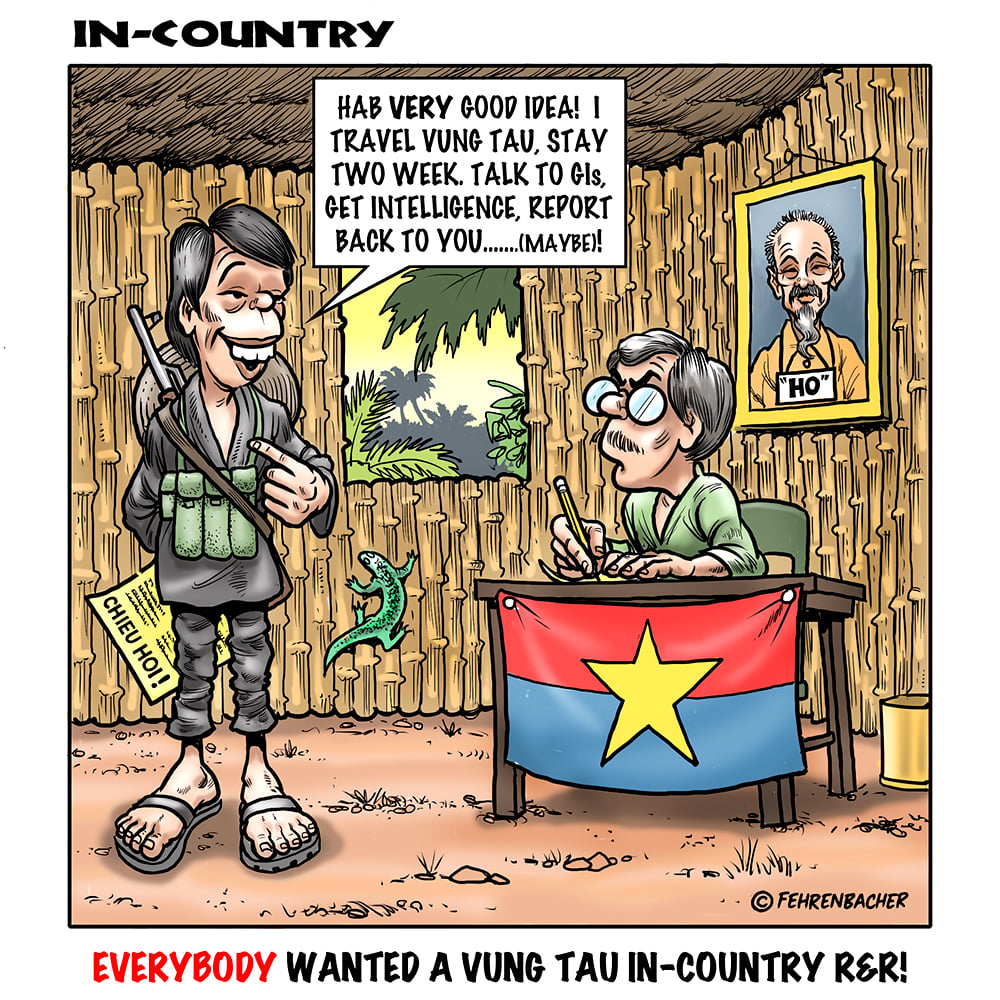 Phil enlisted in the Army in 1965 where he served for years in Vietnam. He became a graphic designer and has worked for the state of Oregon for 26 years. He retired in 2003 and started the Cartoon "In-Country". The cartoons reflect his experiences during his tour of duty in South Vietnam.